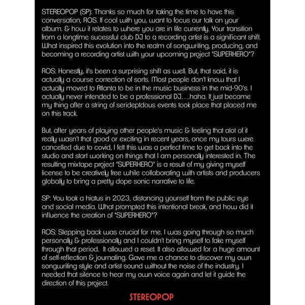 As records are being released from his upcoming debut artist mixtape, "SUPERHERO", ROS will be hitting the road nationwide to introduce the project & flip a few clubs upside down in the process.