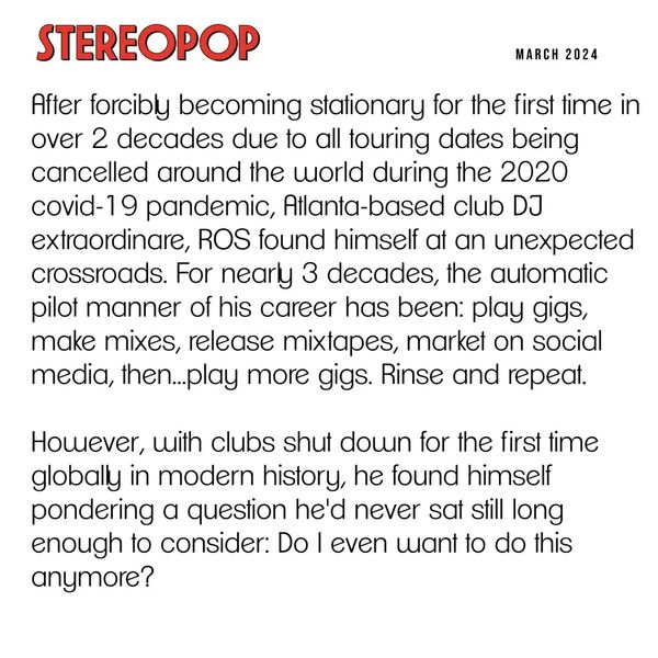 In demand globally for his high-energy, performance focused live sets, ROS has become a bankable